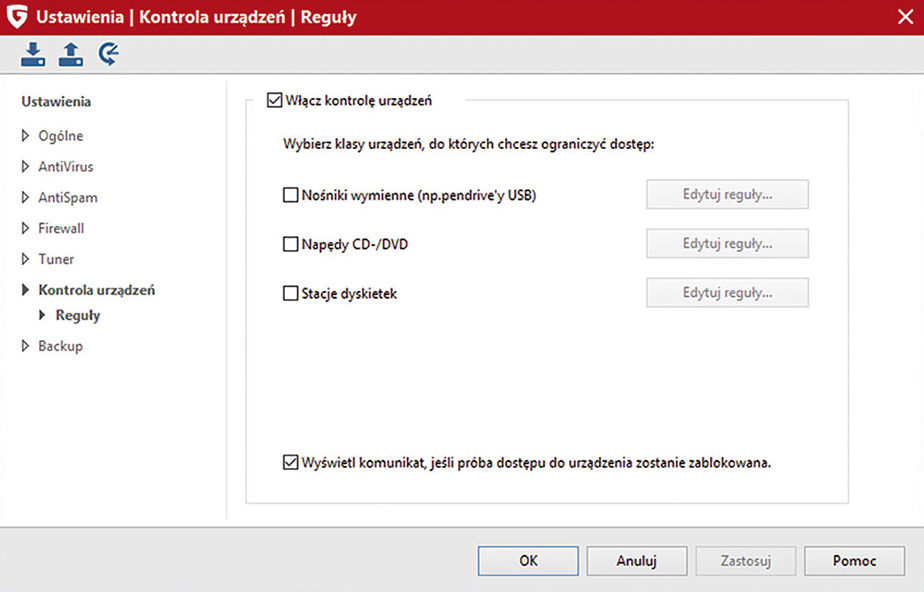 Określ, kto może korzystać z pamięci USB, nagrywarek, dysków twardych i innych urządzeń na komputerze. Dzięki kontroli dostępu można zarządzać dostępem do wszystkich gniazd USB. Zapobiegnie to przedostaniu się złośliwego oprogramowania do komputera poprzez zewnętrzne nośniki danych.