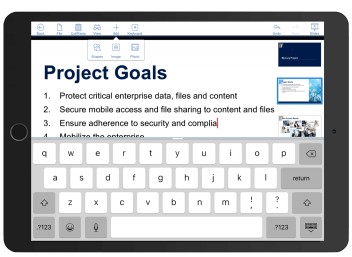 Użytkownicy mogą tworzyć, edytować i synchronizować dokumenty Office oraz opisywać pliki PDF w aplikacji Acronis Access na iOS, Androida lub Windows Mobile. Żadne aplikacje innych firm nie są potrzebne. Wygodna, wydajna i bezpieczna synchronizacja plików i udostępnianie. Dostosuj ustawienia zasad, aby uzyskać właściwą równowagę między wydajnością i bezpieczeństwem.